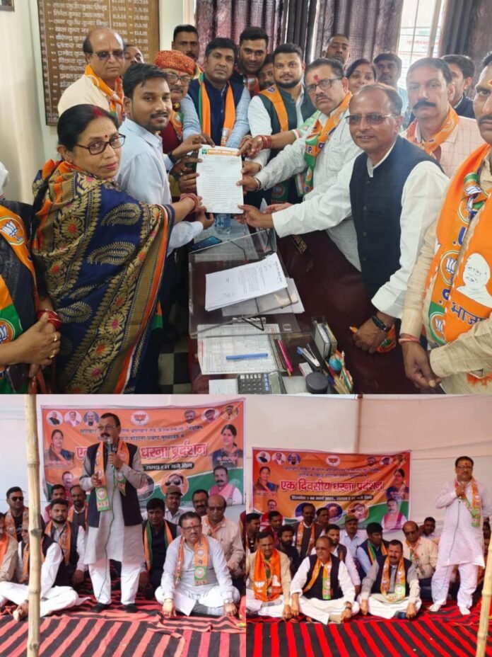 जेएसएससी में नियुक्ति घोटाला,भ्रष्टाचार को ले झारखंड सरकार के खिलाफ भाजपा ने प्रखंड मुख्यालय पर दिया एकदिवसीय धरना