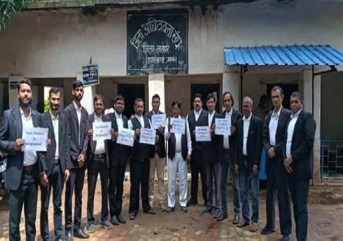 लातेहार: बांग्लादेश में हिंदुओं पर अत्याचार के खिलाफ अधिवक्ताओं का विरोध प्रदर्शन