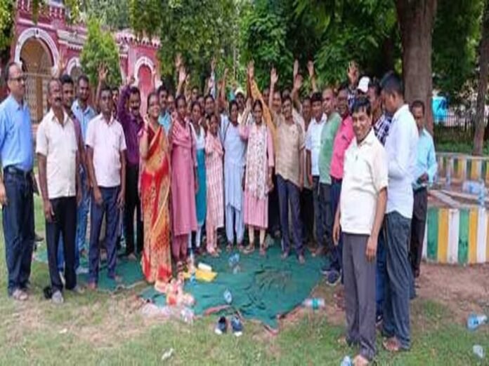 गिरिडीह में मनरेगा कर्मचारी संघ की अनिश्चितकालीन हड़ताल का 13वां दिन