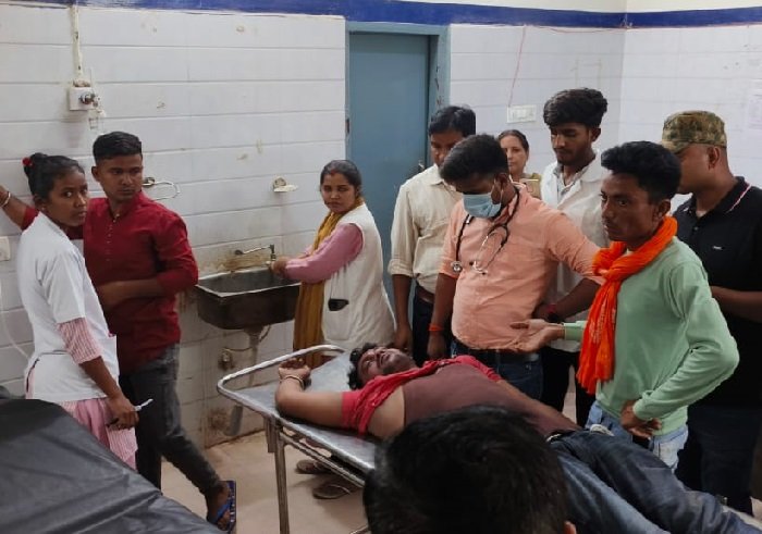 फोटो गढ़वा घटना के बाद सदर अस्पताल में लगी लोगों की भीड़