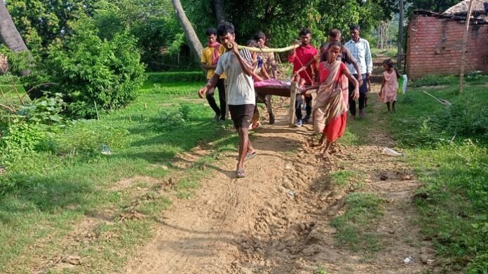 बोरियो- तमाम सरकारी दावों के बीच बोरियो प्रखंड मुख्यालय के सुदूरवर्ती गांव जेटके कुम्हारजोरी से एक मामला सामने आया है। गांव की महिला बेबी पहाड़िन (उम्र 32) पति चंदू पहाड़िया की तबियत अचानक गुरूवार की रात बिगड़ गई, ग्रामीणों के मुताबिक़ यह डायरिया का प्रकोप था। इसके बाद शुक्रवार के दोपहर अधिक तबियत बिगड़ जाने के बाद सामुदायिक स्वास्थ्य केन्द्र बोरियो लाने के लिए परिजन तैयार हुए। लेकिन बेचारी बीमार से ग्रस्त महिला को खटिए के सहारे ग्रामीणों के कांधे पर चढ़कर आना पड़ा। क्योंकि पहाड़िया टोला से लेकर जेटके कुम्हारजोरी पंचायत भवन तक सड़क ही नहीं है। ब्रिटिश हुकूमत के काल में कच्ची सड़क का निर्माण करवाया गया था, लेकिन आजाद भारत की सरकारी तंत्र ने सड़क जैसी साधन तक यहां पर विकसित नहीं किया। इतना ही नहीं खटिए में लादकर महिला को पंचायत भवन तक लाने के बाद, निजी ऑटो में बीच सीट पर सवार कर बोरियो सामुदायिक स्वास्थ्य केंद्र लाया गया। इस महिला मरीज को एंबुलेंस तक की सुविधा सरकारी व्यवस्था ने मुहैया नहीं करवाया, जबकि महिला डायरिया जैसी गंभीर बीमारी से ग्रस्त थी। गांव में पेयजल की व्यवस्था ठीक नहीं है, इस कारण आए दिन डायरिया के मामले मिलते रहते हैं। कमोबेश जिले के अधिकतर पहाड़िया गांवो में शुद्ध पेयजल की व्यवस्था नहीं है। गांव वालों की मजबूरी यह है कि स्थानीय पत्रकारों को कई विडियो क्लिप भी बनाकर भेजा है, ताकि ख़बर आला अधिकारियों तक पहुंचे, और इन ग्रामीणों के तकलीफ़ को दूर किया जा सके।
