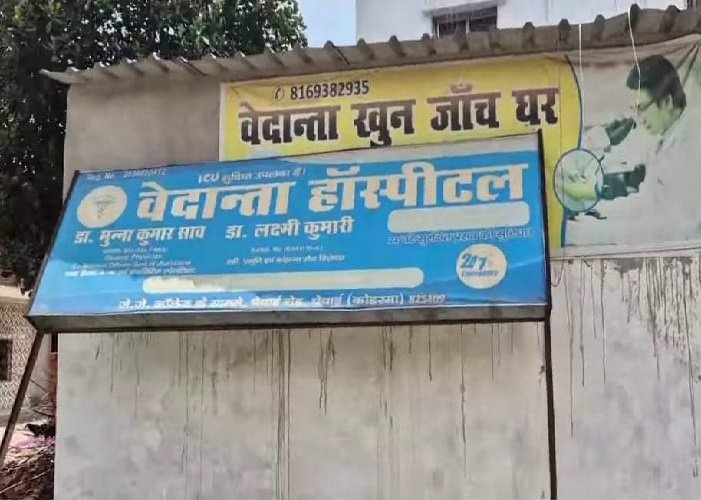कोडरमा: चेचाई स्थित वेदांता हॉस्पिटल में बीती रात को कोडरमा सीएस अनिल कुमार के नेतृत्व में छापा मारा गया। गुप्त सूचना के आधार पर पता चला था कि वेदांता हॉस्पिटल के डॉक्टर मुन्ना कुमार साव पैसे के लालच में 7 महीने के गर्भ का गर्भपात करवाने वाले हैं।